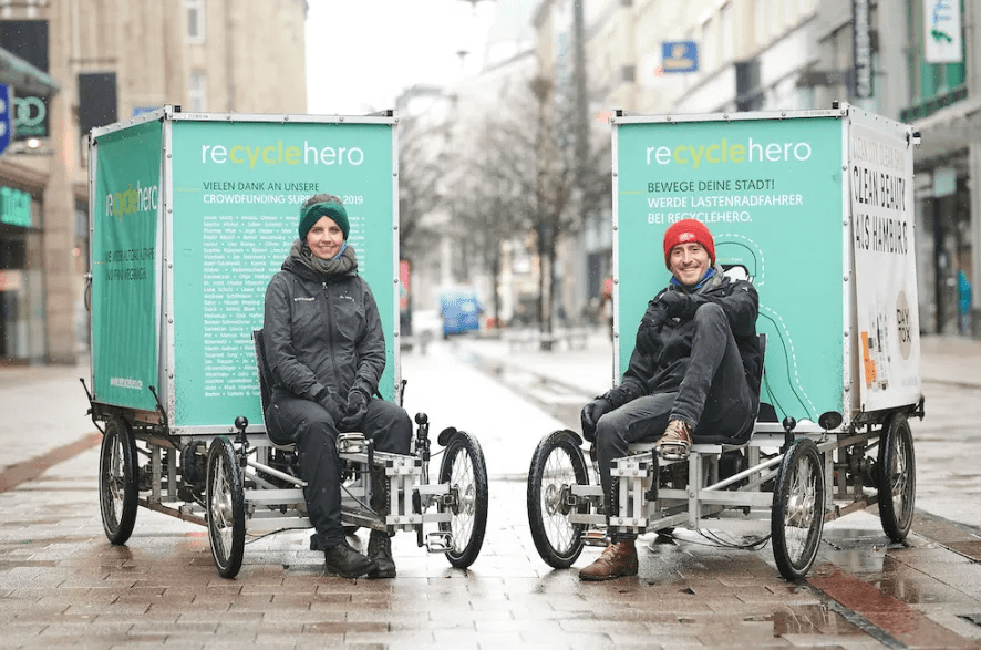 В 2011 году Гамбург, второй по важности город Германии с населением в несколько миллионов человек, получил титул «Зеленая столица Европы». И это неудивительно, ведь здесь вы легко можете встретить немало талантливых людей, которые изобретают довольно необычные разработки, в том числе и для сохранения окружающей среды. Одними из таких являются Надин Гербрих и Алессандро Кокко, которые в 2018 году основали «Recyclehero» — одну из первых в Германии социальных и экологически безопасных служб по сбору макулатуры, стекла, старой одежды и мусора с помощью электрических грузовых велосипедов.