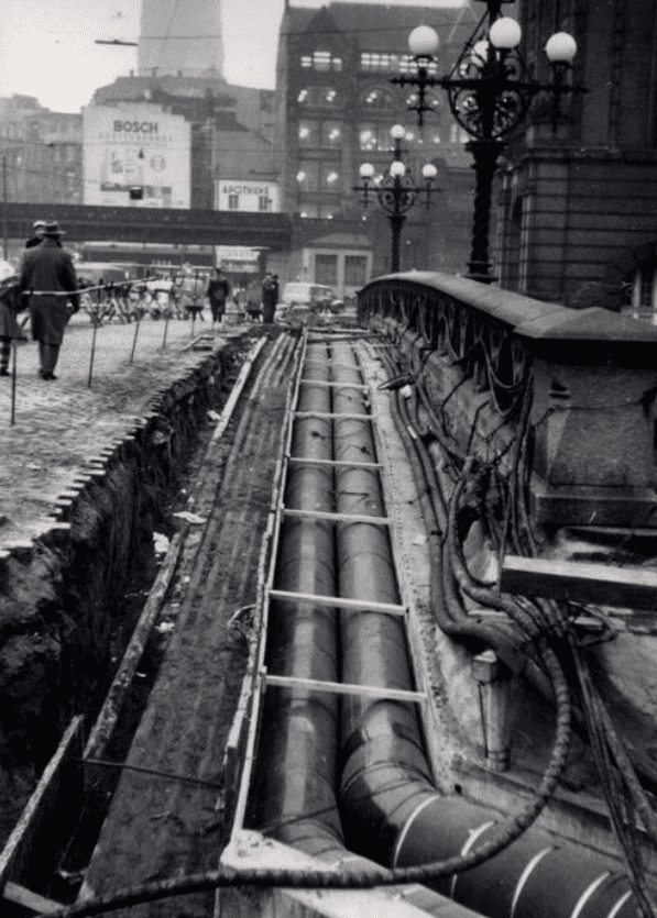 Історія теплопостачання у Гамбурзі починається з травня 1842 року, коли стара ратуша ганзейського міста стала жертвою великої пожежі. Ця подія продемонструвала, що встановлення систем згоряння всередині будівлі більше не є надійним варіантом. Восени 1887 року комісія мерії Гамбурга звернулася до кількох відомих німецьких компаній із проханням розробити проєкт системи опалення та вентиляції для нової ратуші. Контракт отримала гамбурзька компанія Rud.